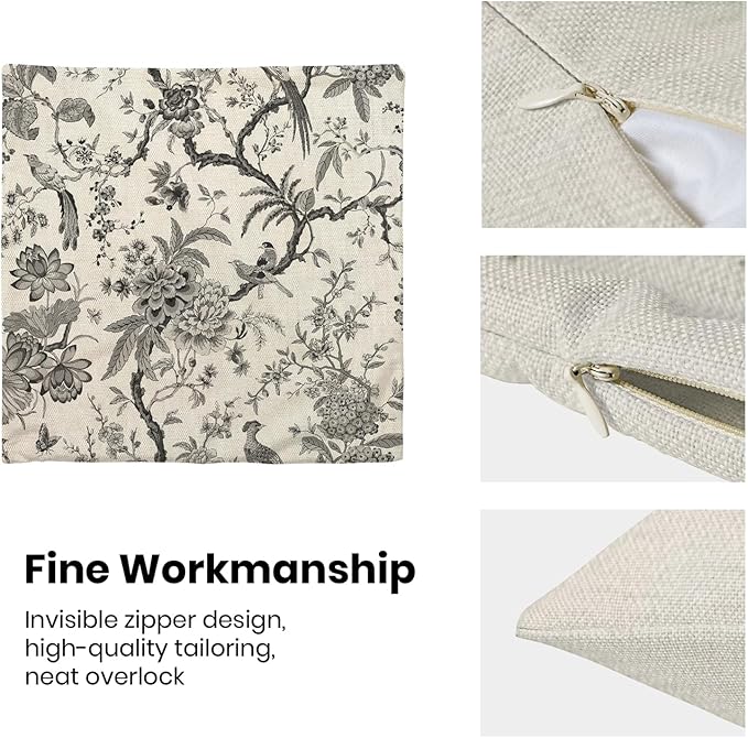 - 【Spring Pillow Covers】 Our Chinoiserie floral throw pillow covers 20x20 inch are made of excellent breathable polyester cotton fabric. The black and white floral decorative pillow covers is durable, soft and skin-friendly. The plant outdoor pillow covers adopt exquisite edging technology and four sides of our floral pillow covers are sewn firmly, which is not easy to open the line.