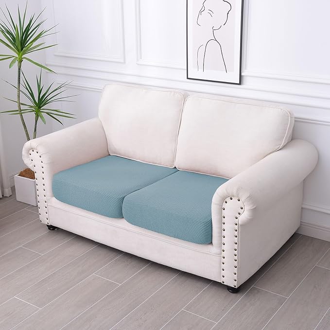 hyha Waterproof Couch Cushion Covers for Pets, Non Slip Sofa Seat Cover for Dogs Washable, Soft Thick Stretch Jacquard Fabric, Sofa Slipcovers with Elastic Bottom (2 Pieces, Lake Blue)