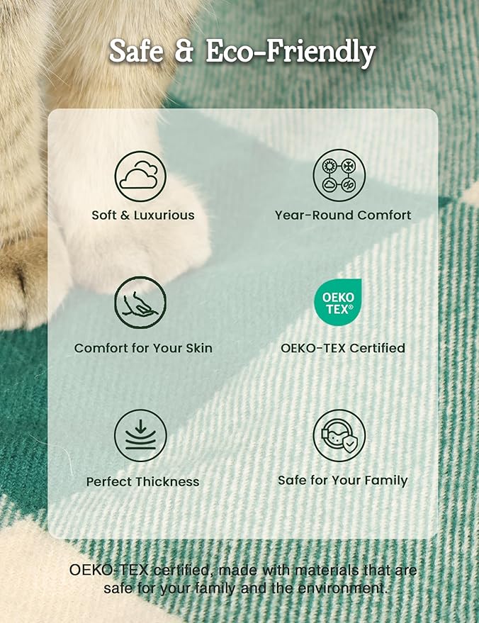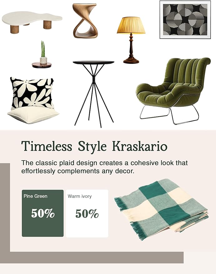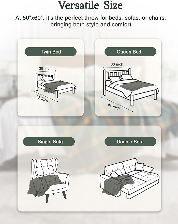 - Perfect Fusion of Artistry & Utility: This blanket seamlessly blends the art of weaving with a distinctive green checkered pattern. It offers a level of softness and delicacy beyond ordinary blankets. Unveiling unique patterns and textures, it instantly revitalizes your room.