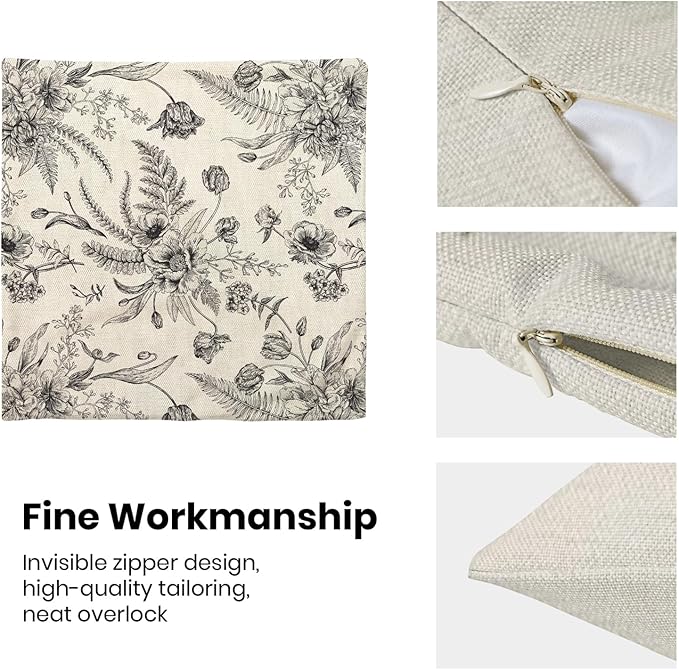 - 【Spring Pillow Covers】 Our Chinoiserie floral throw pillow covers 20x20 inch are made of excellent breathable polyester cotton fabric. The Black and White floral decorative pillow covers is sturdy, soft and skin-friendly. The plant outdoor pillow covers adopt exquisite edging technology and four sides of our floral pillow covers are sewn firmly, which is not easy to open the line.