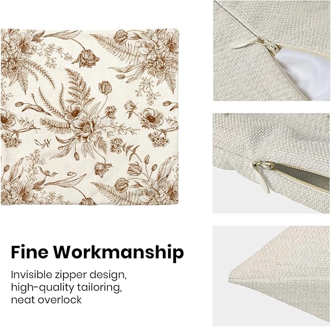 - 【Spring Pillow Covers】 Our Chinoiserie floral throw pillow covers 16x16 inch are made of excellent breathable polyester cotton fabric. The Brown and White floral decorative pillow covers is sturdy, soft and skin-friendly. The plant outdoor pillow covers adopt exquisite edging technology and four sides of our floral pillow covers are sewn firmly, which is not easy to open the line.