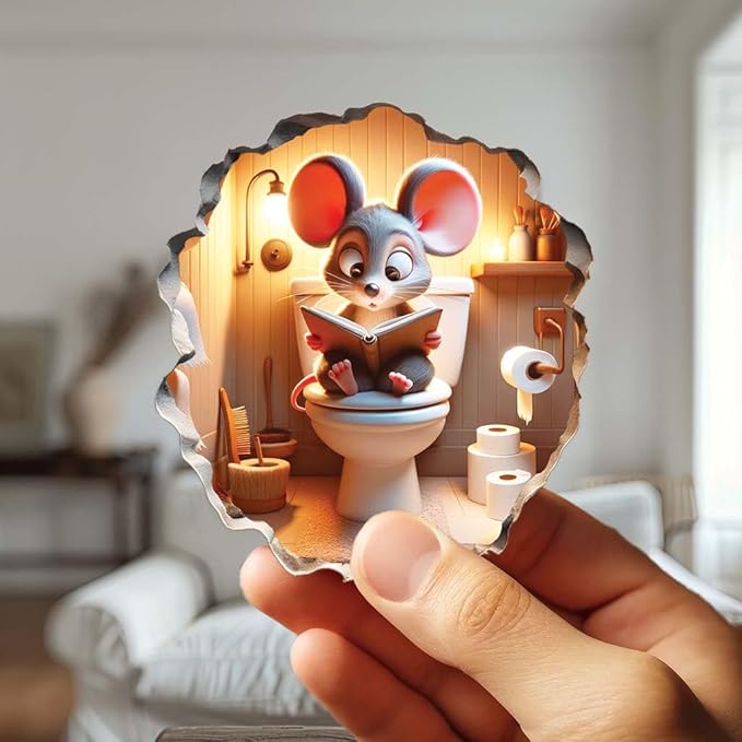 - Vibrant Design: This wall decoration features a Sitting on Toilet mouse in the wall, adding a strong creative atmosphere to your home and letting you and your guests feel the joy of imagination.