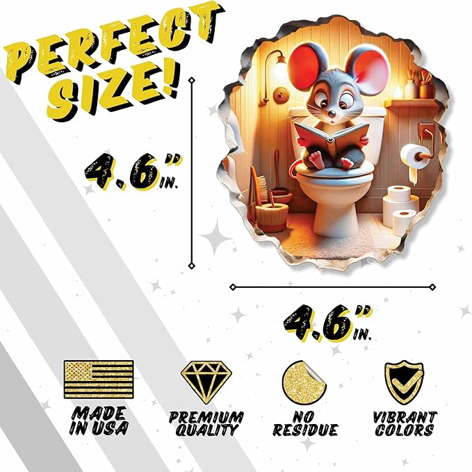 3D Mouse Sitting on Toilet - Mousehole Wall Sticker Decal - Removable Bathroom Decor - Kids Room - Peel & Stick - Whimsical Home Decor - MICESTERPIECE
