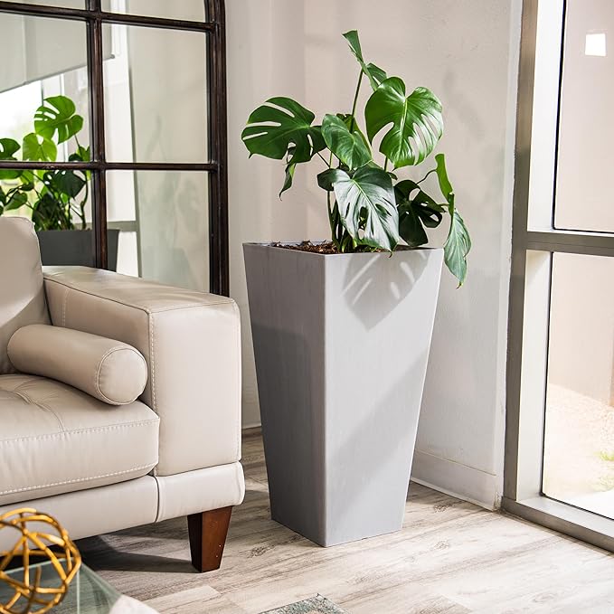 - PERFECT FOR INDOOR AND OUTDOOR USE: Crafted with high-quality plastic material, these tall tapered planters are sturdy and weather-resistant, providing long-lasting durability for your plants in various conditions. Elevate your modern garden décor with these indoor and outdoor planters, enhancing your patio space or home entrance. They will fit perfectly in any corner of your home.