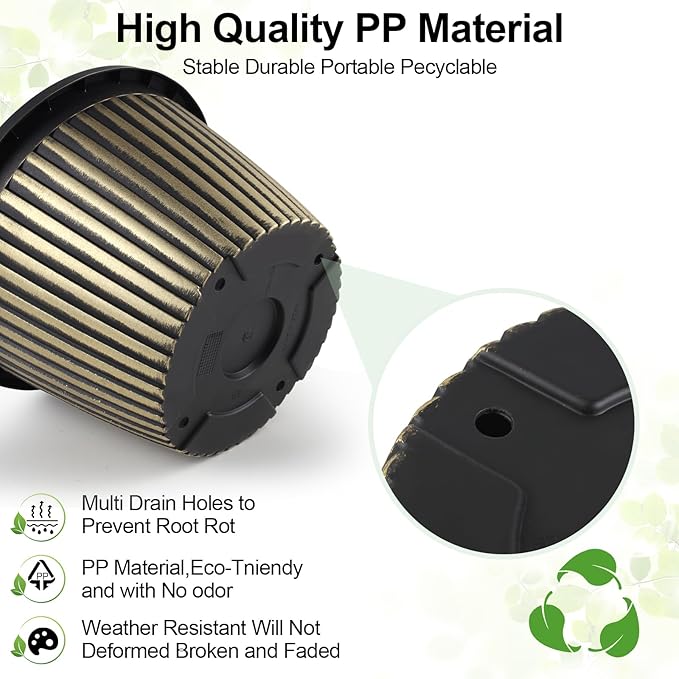- 【MODERN STYLE PLANTERS】 Indoor planters with saucers provide a unique,nice style in ribbed design which gives an understated elegance that will enhance the beauty of your plant. These 14 inch plant pots are available in red-brown &blue-green & gold finished with a black antique stain. Plastic flower pots would be a beautiful addition to anyone’s deck or sunroom or house!