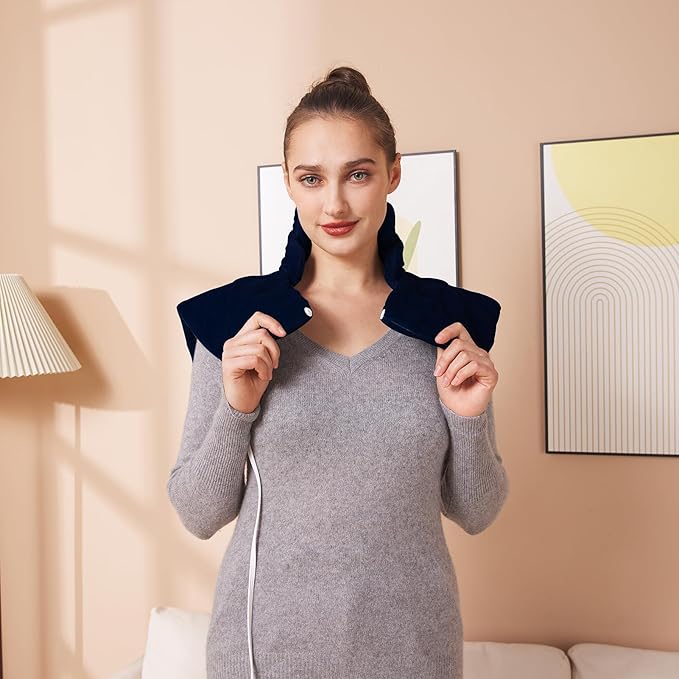 Ruqiji 19" x 24" Weighted Neck&Shoulder Heating Pad, 2.5lbs with 12 Temperature Settings&Countdown timer,Pain Relief for Neck/Shoulders/Menstrual Pain, Christmas Gifts for Women Men Mom Dad(Navy Blue)