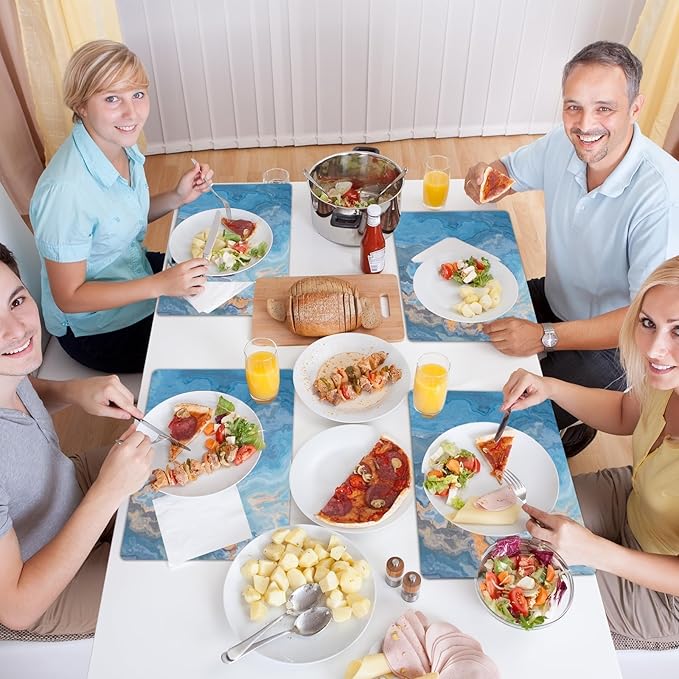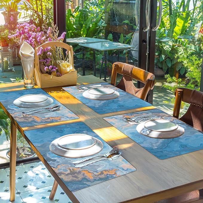 - Easy to clean: With their effortless cleaning process, this blue marble placemats dining table mat set saves your time. Simply rinse them with water or wipe them clean with a paper towel, and they will be good as new.