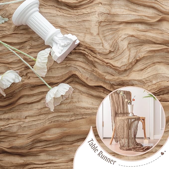 - 【Diversified Use】Boho cheesecloth Table Runner is necessary choice for beautifying tables. It's used for home decor, outdoor events, formal and informal setting in all seasons. Such as wedding decor, baby shower, bridal showers, parties, engagement banquet, Valentine's Day, Thanksgiving, Christmas.