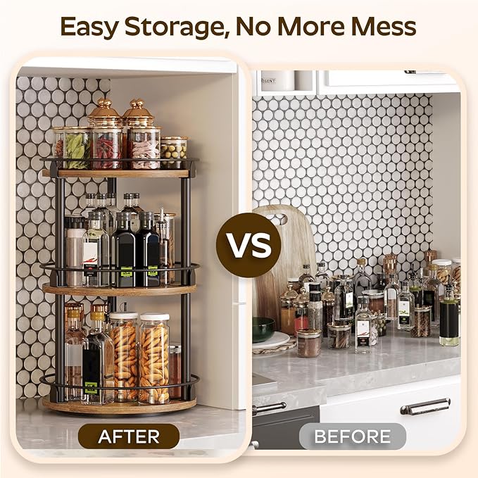 - Reduce Countertop Pressure: It is multifunctional. On the kitchen countertop, it keeps spice jars close at hand to make cooking fun. On the vanity table, it holds your beloved pieces. At the dinner table, you can easily "spin" to get your favorite