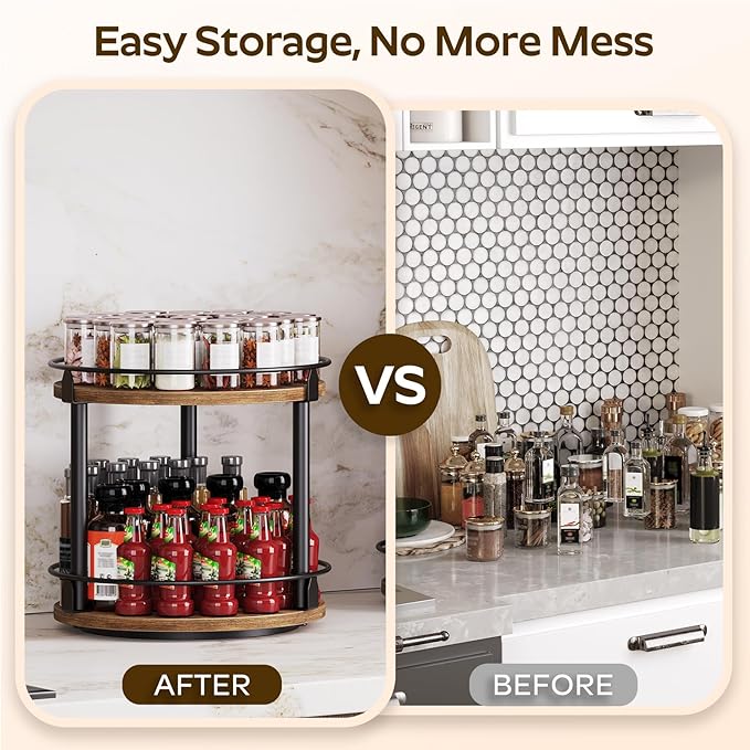 - Reduce Countertop Pressure: It is multifunctional. On the kitchen countertop, it keeps spice jars close at hand to make cooking fun. On the vanity table, it holds your beloved pieces. At the dinner table, you can easily "spin" to get your favorite