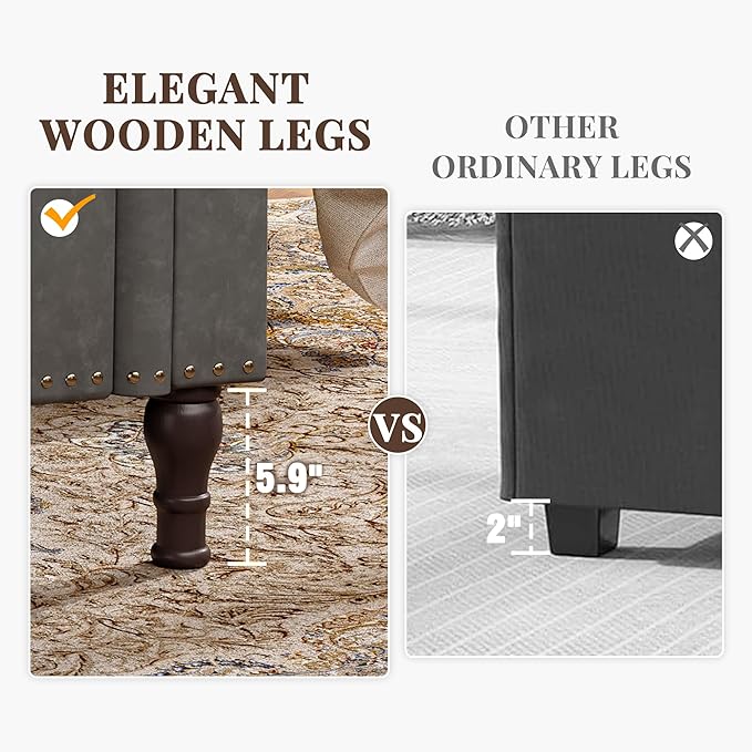 - 【ROLLED ARM & RIVET DECORATION】This bed bench combines rolled arms with vintage rivets, which can reduce wear on the bottom edges. The surface leather is closely adhered to the inner sponge, making it resistant to deformation. The exquisite design decoration adds a sense of fashion to your room while providing practicality and aesthetic appeal.