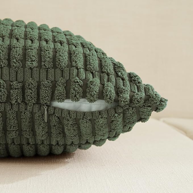 Fancy Homi 4 Packs Boho Olive Green Decorative Throw Pillow Covers 16x16 Inch for Couch Bed Sofa, Rustic Modern Farmhouse Home Decor, Soft Plush Corduroy Cute Square Cushion Case 40x40 cm