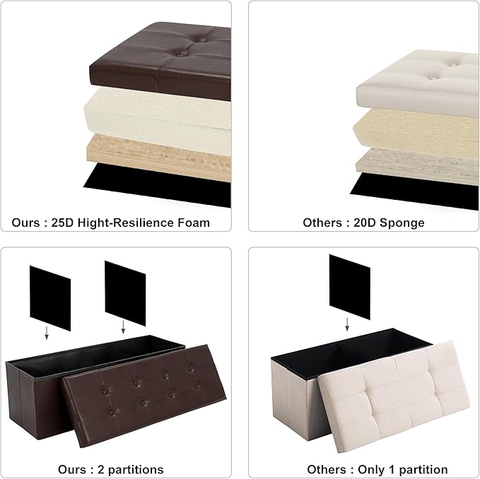 - Seconds to assemble: Only take seconds to set up, no need whatever tools. Simply fold the lower part of the bench for space-saving storage when out of use, then tuck the ottoman under your bed or above the wardrobe.