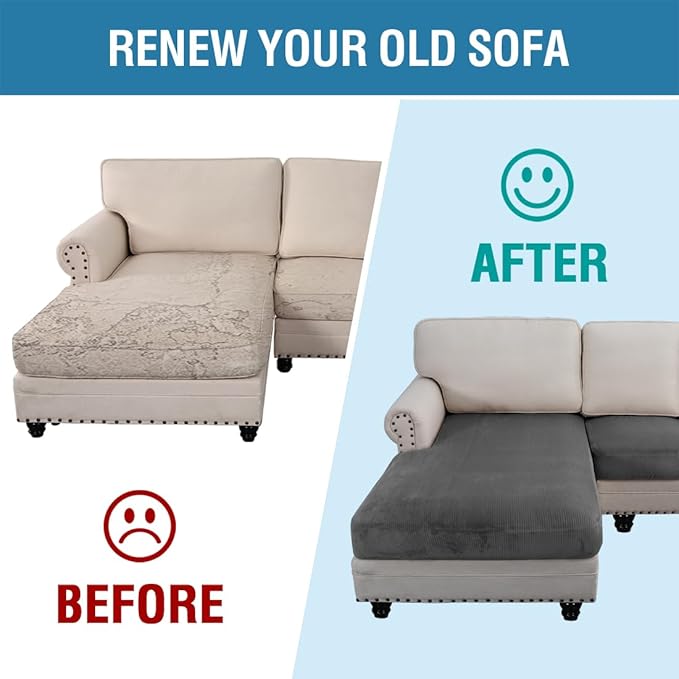 - INCREDIBLY COMFORTABLE VELVET: Products passed GLOBAL RECYCLED STANDARD certificate.This innovated stretch sofa slipcovers are constructed with 3 PIECES,including 1 Chaise cover and 2 individual cushion covers. Crafted from luxurious velvet plush fabric with unique striped cuts, feature thick, soft, smooth, anti-wrinkle, no fading, durable as well as highly stretch. Protect your cushion furniture from daily wears and tears, stains, kids, scratches from pet claws, dogs or accidental spills