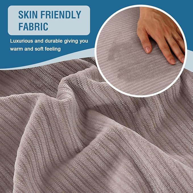 H.VERSAILTEX Velvet Stretch Sectional Sofa Covers - 3 Pieces, L-Shaped Chaise, Taupe Striped