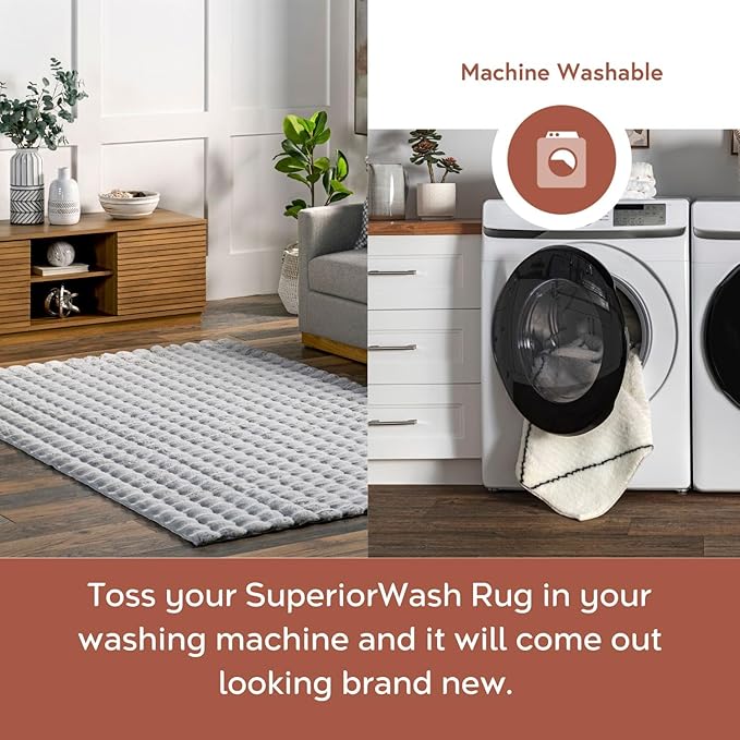 - Machine Washable: When that inevitable “oops” happens, simply place your area rug in the washing machine with cold water on the gentle cycle (do not use bleach). We recommend line drying your rug or without heat on the air-only drying cycle.