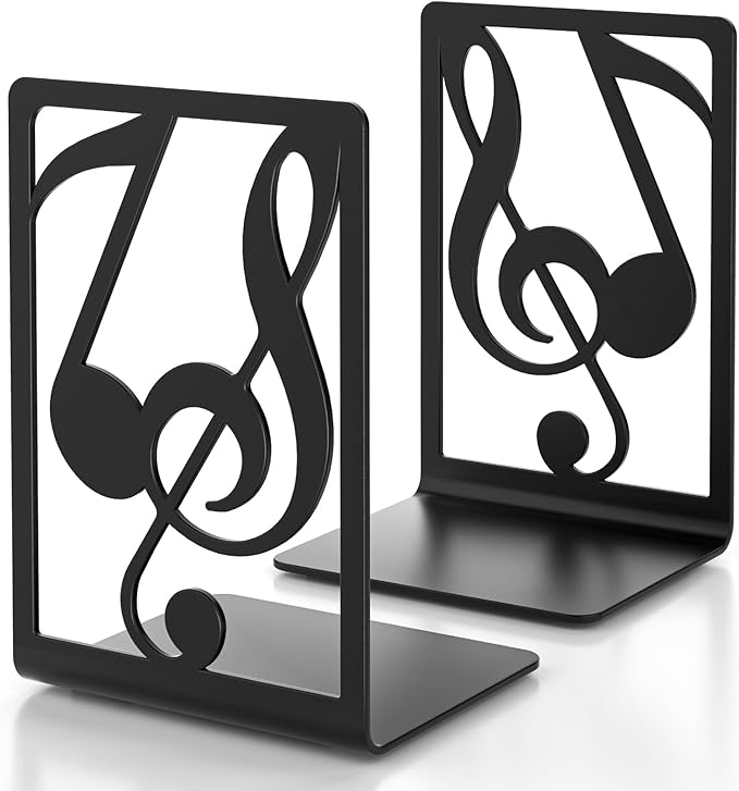 - 【Metal Book Ends】: Crafted from selected heavy-duty steel, our book ends features unique designs of musical notes and flowers, adding an artistic ambiance to your reading space. Not only practical but also aesthetically pleasing.