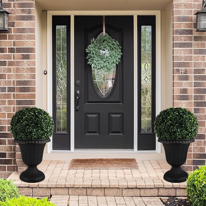 - YEAR-ROUND USE - The recycled polypropylene material is tough enough to endure heat and cold, so you can enjoy these porch planters outdoors all year long. Use the garden planter urns for flowers in the summer, then display artificial greenery in winter.