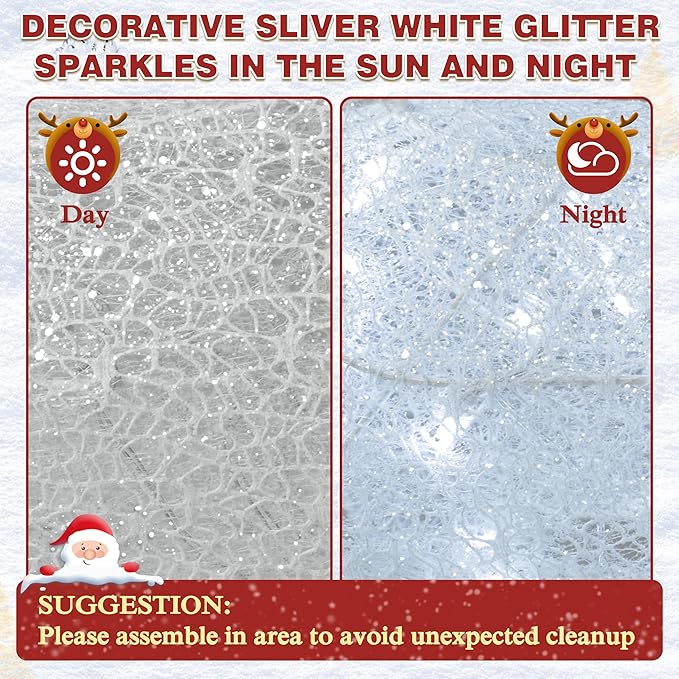 - LED Lights: The pre lit iridescent deer set is installed with dense 200 LED lights beads which make it sparkles colorfully in the sun and night. Observable color may vary by reflecting external light due to the nature of iridescent material
