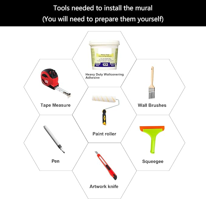- Warm tip: This mural is not peel and stick, you need to buy your own glue, it is recommended to use Heavy Duty Wallcovering Adhesive.