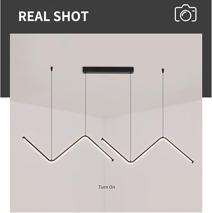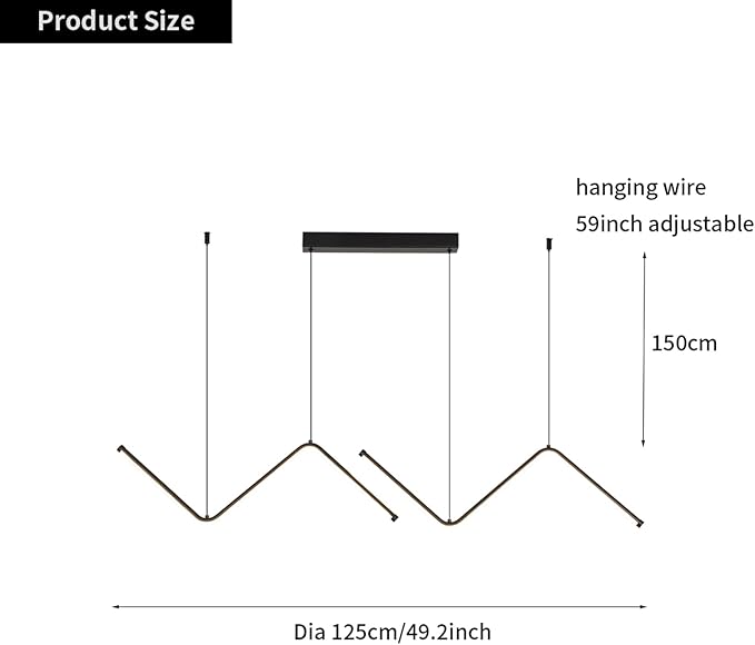 - 【Lighting Fixture Size】Lamp body size: 49.2 × 6.7 inches (length × height), hanging wire length 59 inches (adjustable). You can move the lamp up and down by pushing the cable into the two buttons of the ceiling box