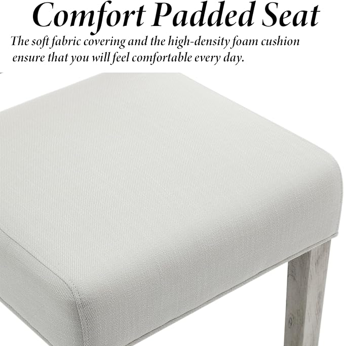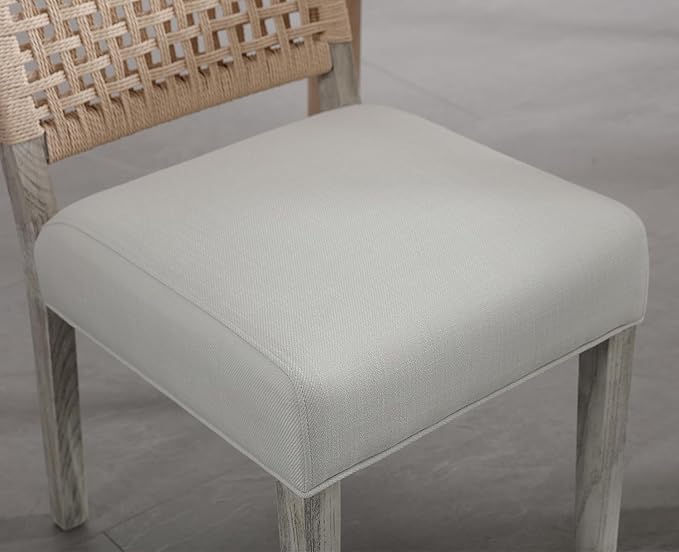 Kmax Farmhouse Dining Chairs Set of 6, Rustic Kitchen Chairs with Linen Fabric Seat and Woven Back, Vintage Accent Chairs for Dining Room, Living Room, Ivory