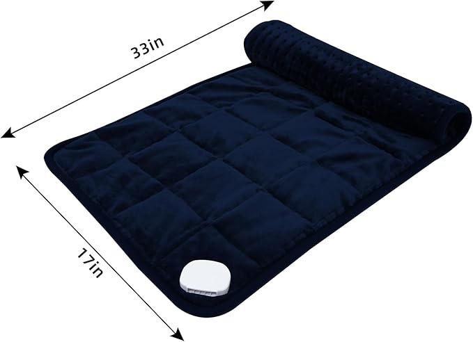 Ruqiji 17''x33'' Weighted Heating Pad, 5.2lbs with 12 Temperature Settings& Countdown Display, Pain Relief for Back/Neck/Shoulders/Abdomen/Legs, Birthday Gifts for Mom Dad Women Men (Navy Blue)