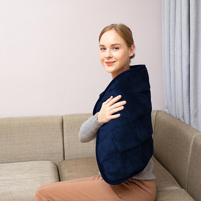 - Weighted Pressure Design Brings More Physical Therapy Benefits: Distributed glass beads in this heating pad can produce 5.2lb pressure, which makes the heating pad fit your any body parts better and focus and save more heat. And it helps relieve pain more effectively than a traditional heating pad because the weighted pressure design can better embrace you and relieve anxiety.