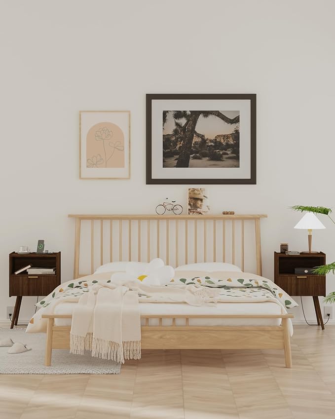 - Small Side Table for Small Spaces:This nightstand is small but has a lot of space,with a storage drawers and open wood shelf that provides a perfect storage space for your remote control, glasses, medicines and other essentials close at hand.The wide top is perfect for displaying a lamp, clock, potted plant or photo frame to offer warmth and personalized decoration.