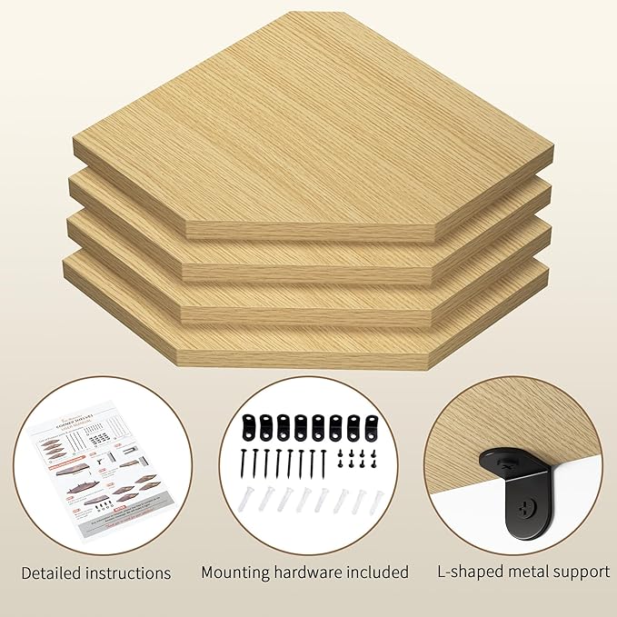- Easy to Mount: The package comes with user-friendly instructions and all the necessary mounting hardware. Just place the corner wall shelf level in your desired location and secure it in place using the hidden bracket connectors provided, followed by screws