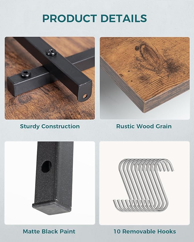 - 【Flexible Installation Options】Includes two 11.8"D x 23.6"W pot shelves with 10 S hooks. Install side by side for a 47.2in long shelf or separately to suit your wall space and storage needs