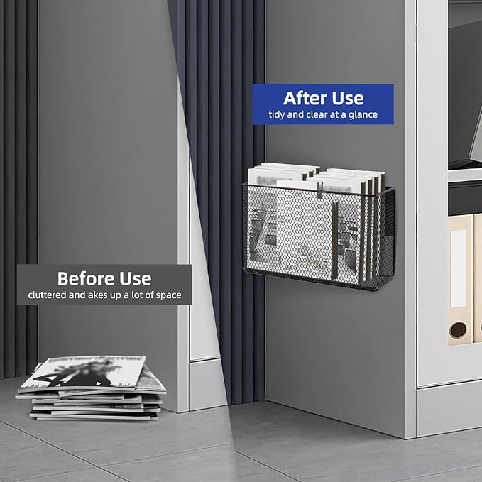 - Multi-purpose: The magnetic basket for fridge measuring 10 x 3.34 x 5.9 inches can not only store paper, magazines and newspapers, but also office supplies such as markers, pens, scissors, etc. It can also store condiments, preserving film, cereal boxes and other kitchen supplies