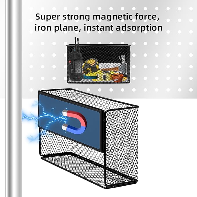 - Mesh Design: The wire mesh structure of magnetic shelves for locker Organizer makes it easy to clean, items are clearly visible and easy to reach, no need to search for items everywhere