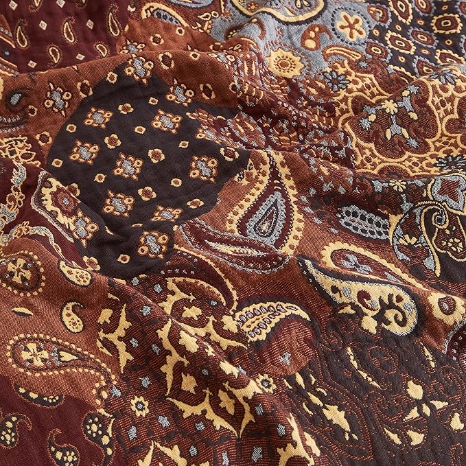 Boho Throw Blanket for Bed 80”x90”, 100% Cotton Woven Blanket for Couch Sofa, Ultra Soft 4-Layer Muslin Quilt with Patchwork Floral Printed, Farmhouse Bed Blanket/Cover for Living Room Decor