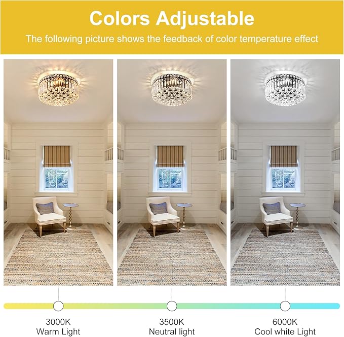 - ☀Modern Base Design : Round Chandelier lampshade,consisting of numerous clear crystal beads and Gold plating steel frame, with 4 Lights holder, creating an elegant and luxurious atmosphere. Crystal ceiling light suits for Hallway, Living Room, Bedroom, Kids Room, Kitchen, Bar, Aisle, Hotel, Restaurant, Pass-way and more.