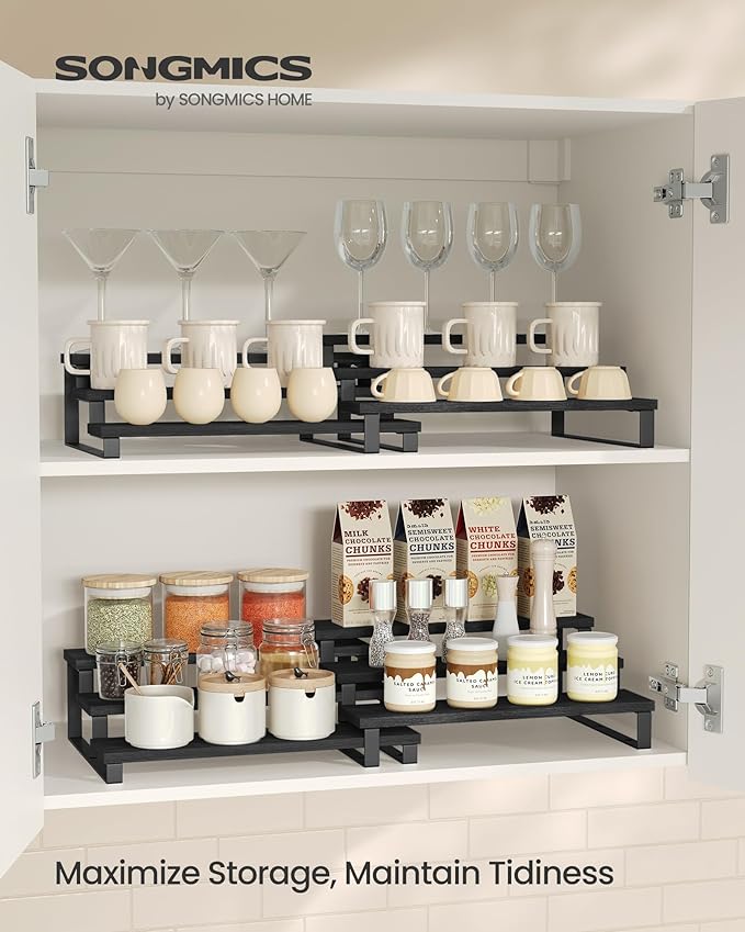 - 【FIND AT A GLANCE】With its specially designed tiered structure and each tier being 3" deep, this display riser ensures all your spice jars and items are clearly visible and easily accessible, preventing messes and keeping your kitchen organized
