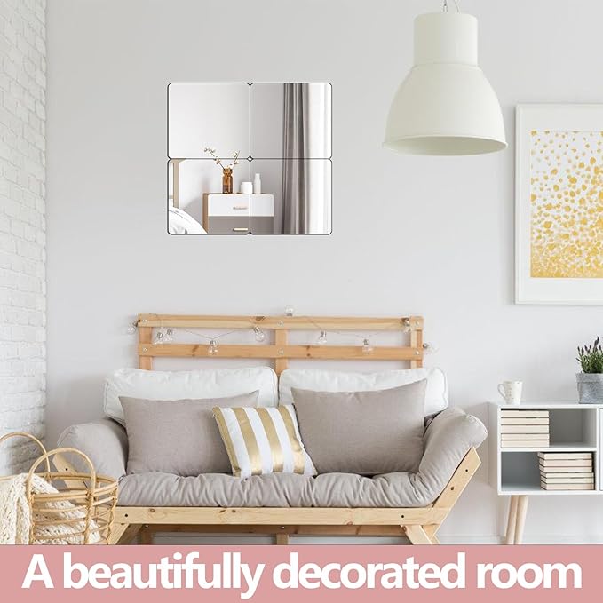 Unbreakable Full Length Wall Mirror,Mirrors for Bedroom,Over The Door Mirror,4 Pcs 12"x12",Shatterproof Plexiglass Acrylic,Long Closet,Workout for Home Gym Body Mirrors for Bedroom