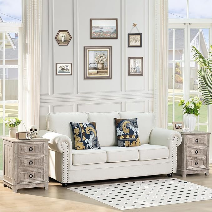 - Elegant and Sophisticated 3-Drawer nightstand:This 3-drawer Farmhouse nightstand features a refined and minimalist linear design that is visually appealing at any time. The nightstand with drawers retains the natural wood grain texture and a distinctive contrasting color scheme, making it suitable for various home decor styles.
