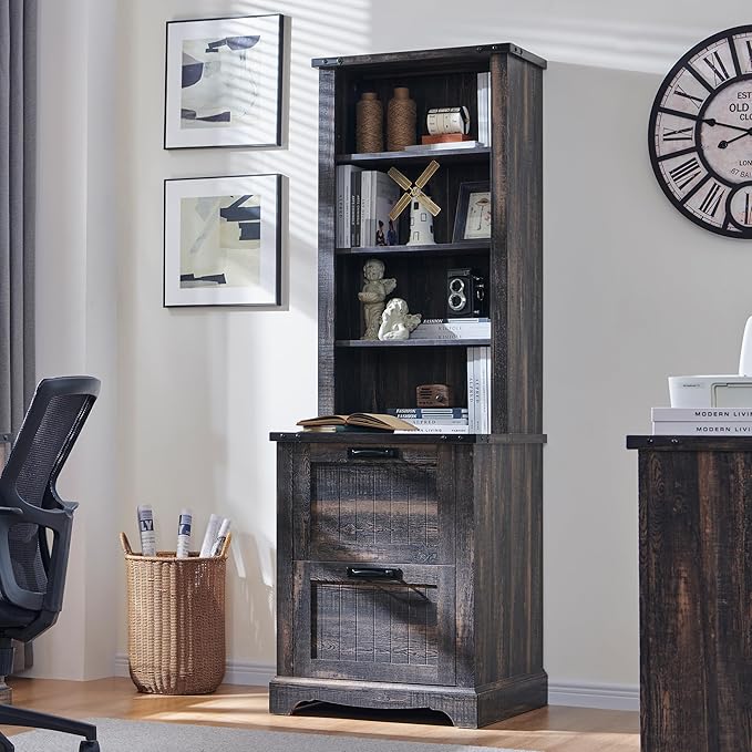 - Two Large File Drawers: The office bookshelf has two large and deep file drawers (overall size is 16.6"W*17"D*10.2H) and are equipped with adjustable file hangers to accommodate both legal-or letter-sized documents. Drawers are set on full-extension, metal ball-bearing glides for smooth movement and easy removal.