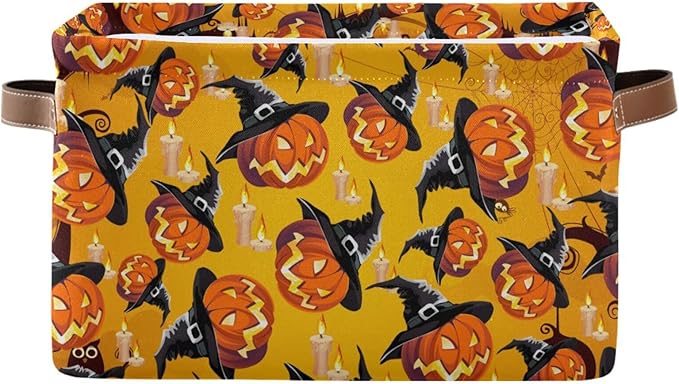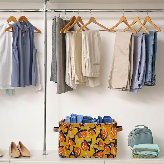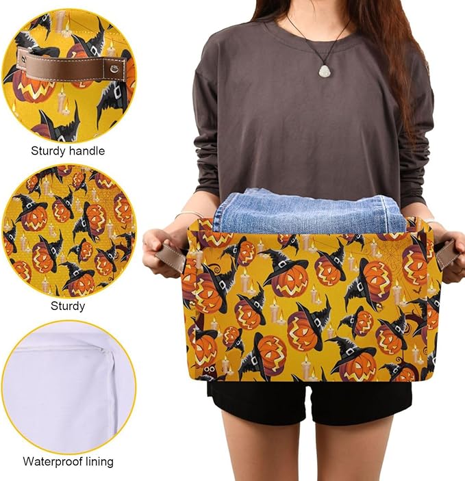 Storage Basket Bin Organizer Basket Collapsible Shelf Basket Cube with handle for Nursery Bedroom Bathroom, one sizex1, Pumpkin