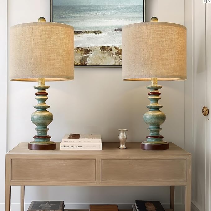 BOBOMOMO 20" Farmhouse Lamps for Bedrooms Set of 2, Retro Side Table Lamps Bedside Lamp for Side Nightstand Living Room(Suitable for Decorating Small Areas)