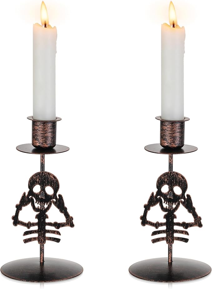 - Beautiful Halloween Table Decoration: Whether you're hosting a dinner party or simply want to add a touch of eerie elegance to your home, these skull candlestick holders are ideal for creating a hauntingly beautiful centerpiece.