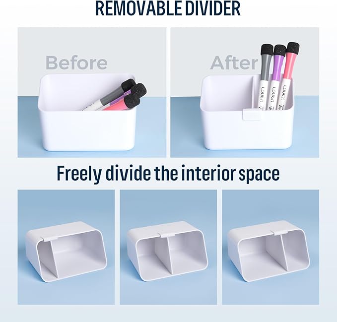 - Light Capacity: Includes a small marker holder (4.8 x 2.24 x 2.36 in) and a mini marker holder (2.95 x 1.85 x 2.24 in). The small holder can hold 1 whiteboard eraser, 1 whiteboard cleaner, and several dry-erase markers or other accessories. The mini holder can fit 1 eraser or 1 whiteboard cleaner and several markers. Offers flexible storage options based on your preference