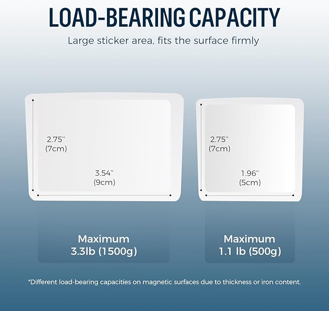 - Super Load-Bearing: Secure magnetic storage organizer for whiteboards. The small size has a maximum load-bearing capacity of 3.3 lbs (1.5 kg), while the mini size has a maximum load-bearing capacity of 1.1 lbs (0.5 kg)