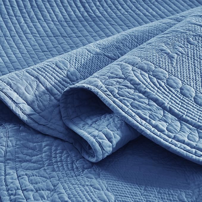 MarCielo 3-Piece 100% Cotton Oversized Bedspread Lightweight Quilt Coverlet Embroidery Farmhouse Bedding Set (TG Midtone Blue, Oversized King (118"x106"))