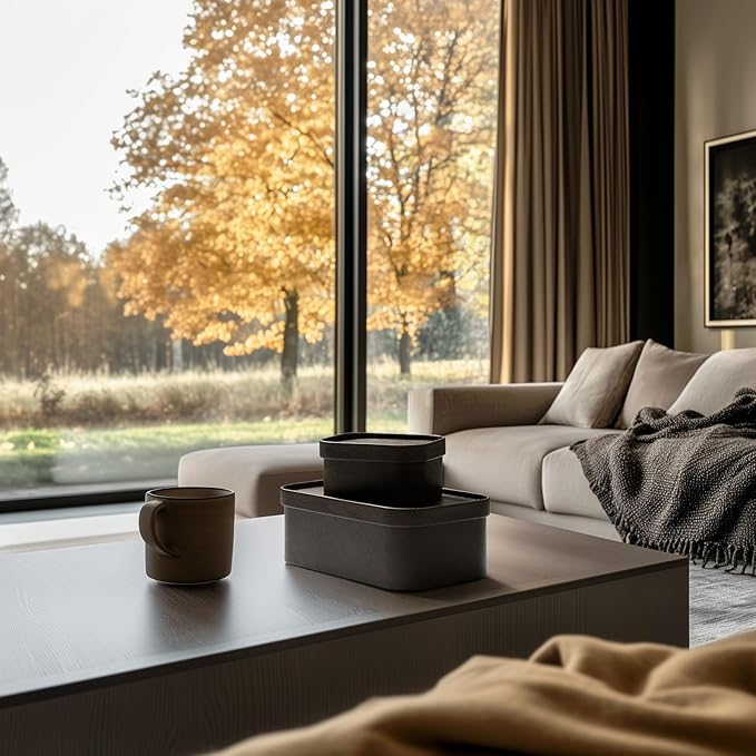- SUPERIOR CRAFTSMANSHIP AND ENDURING QUALITY: Built tough, each box is laminated with textured corrugated cardboard and topped with luxurious vegan leather lids. This premium construction offers both style and solid protection for your belongings—an essential for any well-designed home