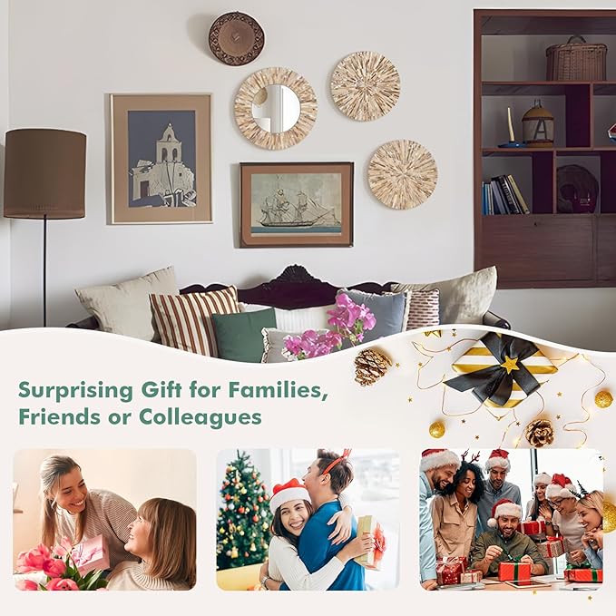 - VERSATILE MIRROR WALL DECOR: Whether moving into a new home or looking for a special gift, this bohemian decorative wall hanging set is an unbeatable choice. Perfect for home office, hotel or coffee shop. It makes a lovely addition to living rooms, dining rooms, bedroom, bathroom, nursery, guest room, entrances, porch, fireplace, and by windows. Plus, a warm gift for families, friends or colleagues on holidays, birthdays, anniversaries, housewarming, Christmas or Thanksgiving