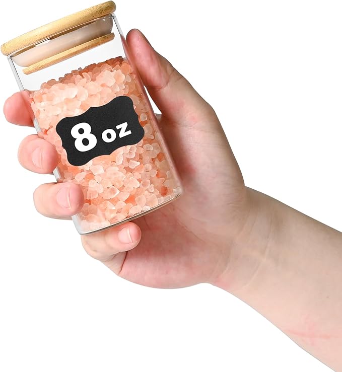 - [Product details] Round glass storage jar height:4.13in. Diameter:2.36in. Capacity: 8oz(227ml). Package contains: 12pcs. 12 pieces glass pantry storage containers with same volume meet you various storage need.