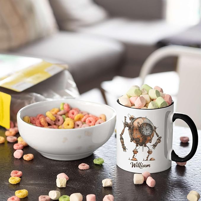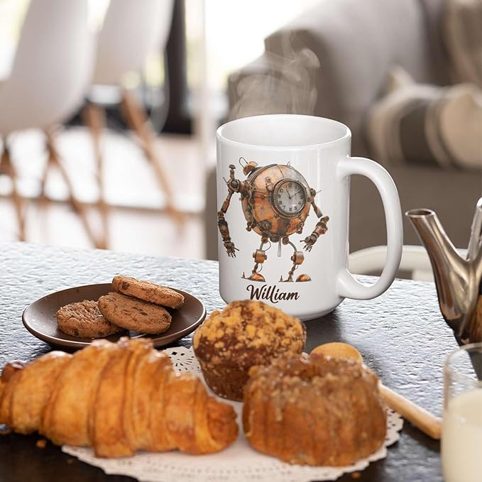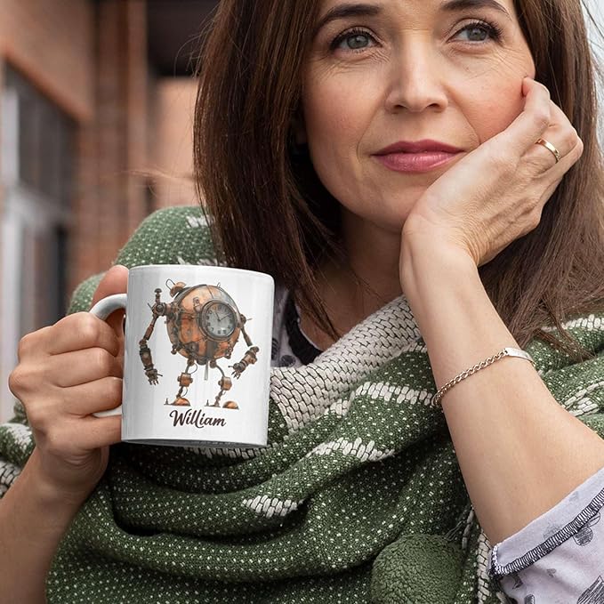 - ✨【UNIQUELY PERSONALIZED】Dive into the world of steampunk with this Steampunk Robot Coffee Mug featuring a custom name and mechanical-themed design. Available in 11oz or 15oz sizes, this ceramic cup gift for steampunk enthusiasts. Click "Customize Now" to create a personalized gift for your daughter or son. This unique white cup is ideal for daily use and makes a fantastic and thoughtful present for any occasion.