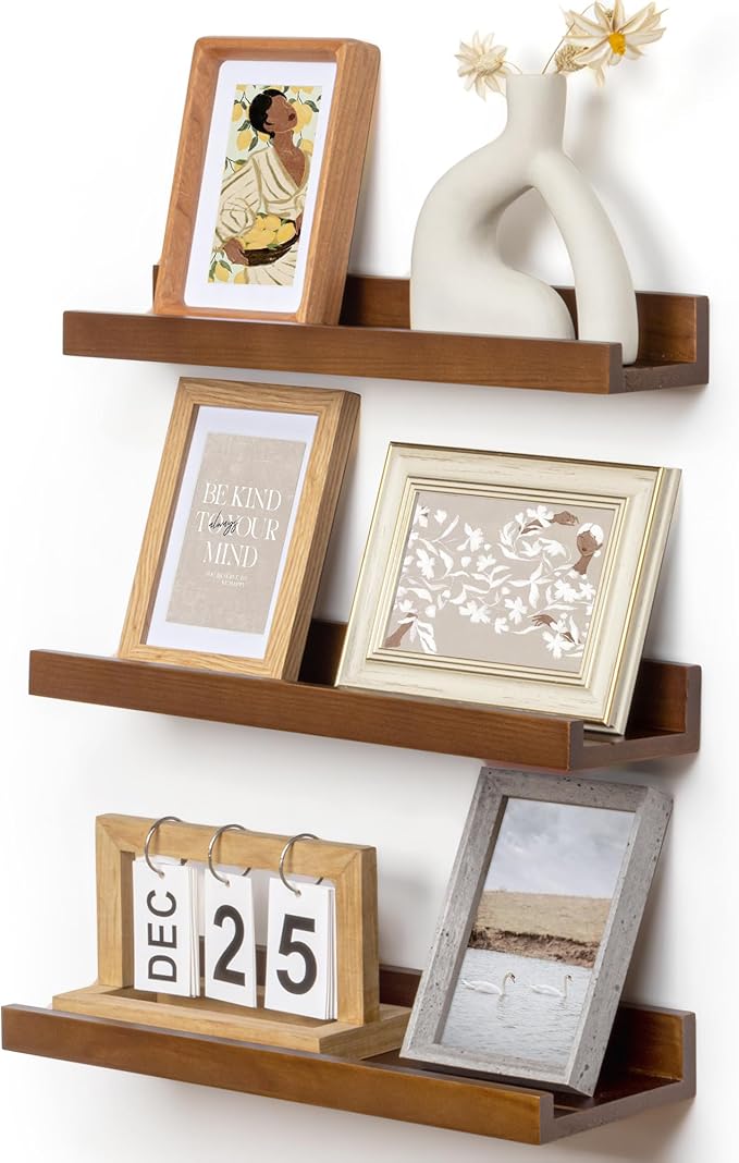 - Easy to Install: You will get a level, screws for the wall, drywall anchors, a detailed installation guide, and two beautiful hand-crafted solid pine wood shelves. With the level, you can make sure your picture ledge shelves are well aligned. Just follow the simple instruction to install the hanging shelves for wall decor within 10 minutes. We add additional screw and anchor to the hardware bag just in case. If you have any questions about our products, please feel free to contact us